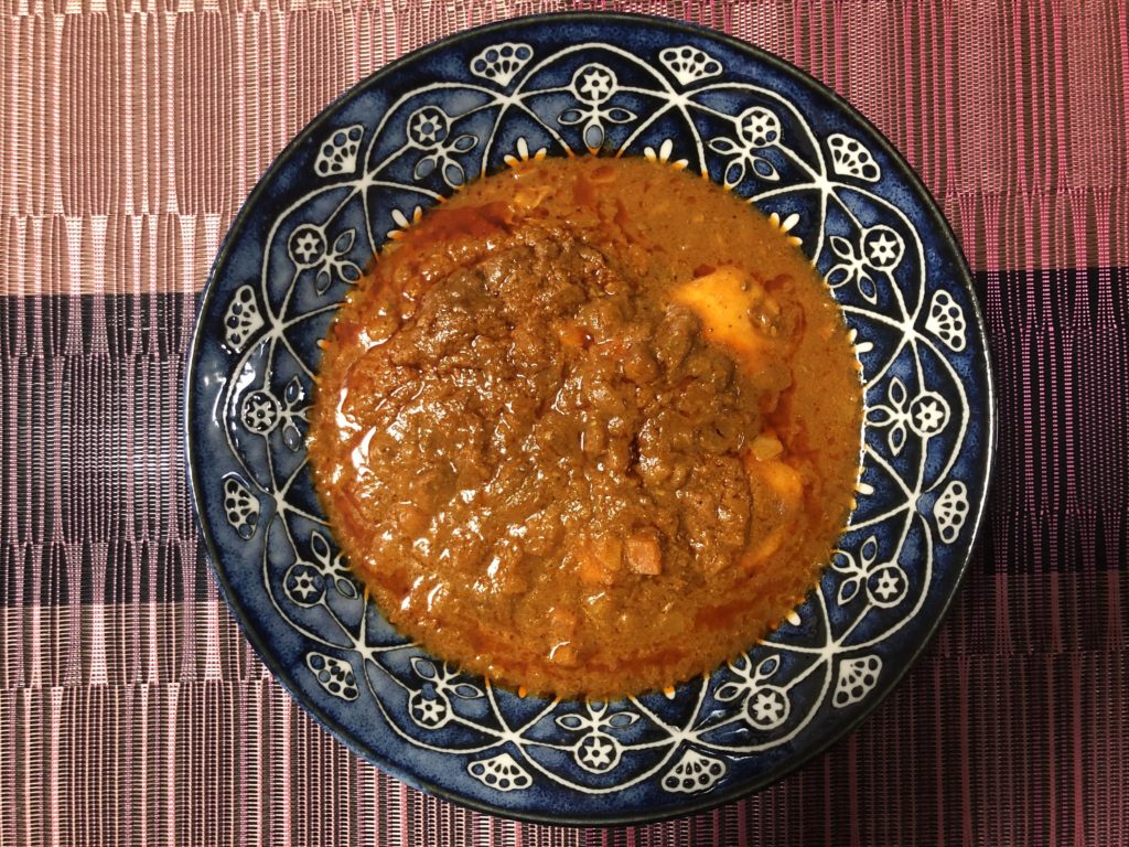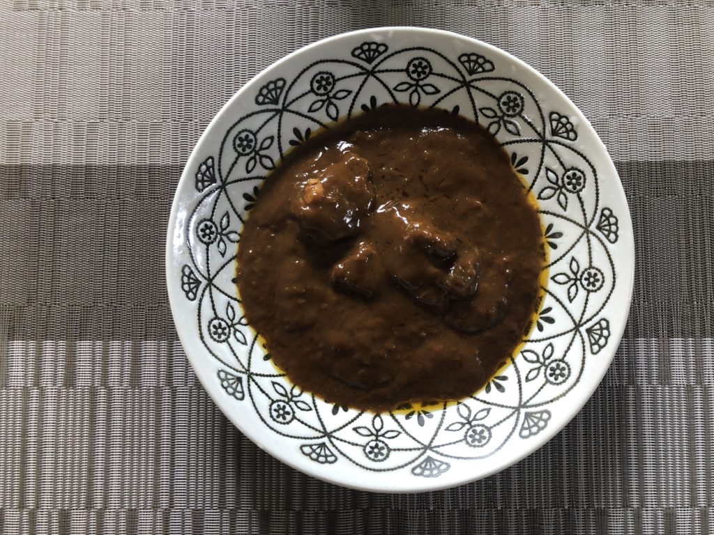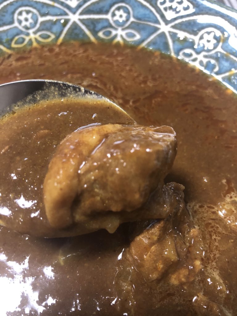 マイルドで上品なカレー。牛肉のブロックのボリューム・高級感あり。
