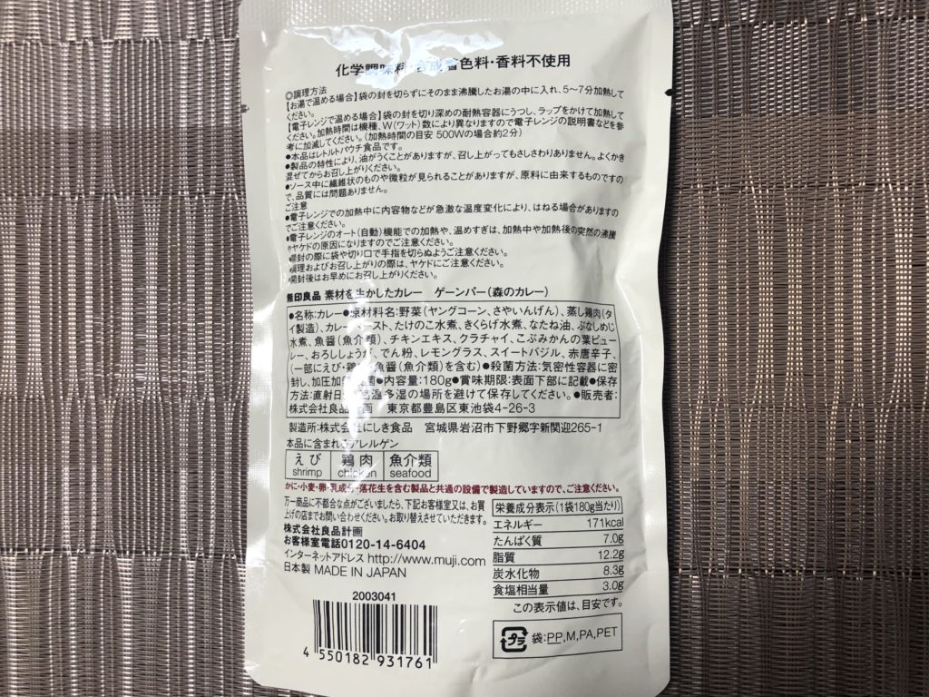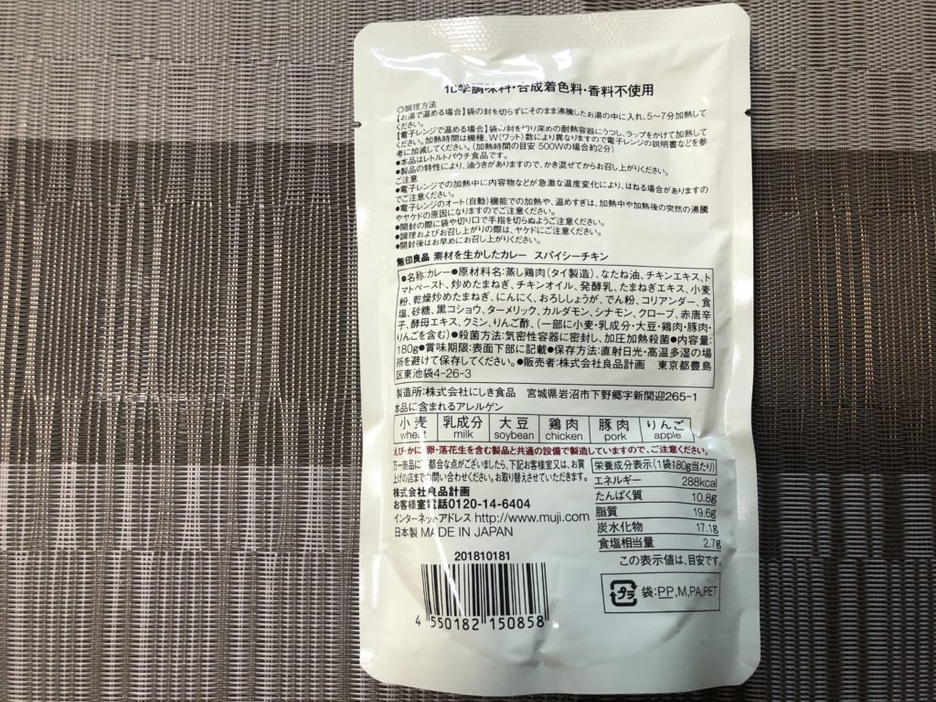 ファーストインプレッションは酸味の強さ。レモングラスがよく効いている。カレーソースを口に入れると、タイカレー独特の香り高さを感じる。かなり具沢山な上にバラエティが豊富で食べ応えも抜群だ。特にヤングコーンとタケノコの食感の良さ、よく煮込まれた鶏肉の旨味を強く感じた。そして無印良品ならではのクオリティの高さ。カレーソースも具材もとにかく美味い。辛さの表記は辛口と激辛の中間で、実際にかなり辛い。頭に汗をかくレベルだ。辛い物好きにはたまらないだろう。