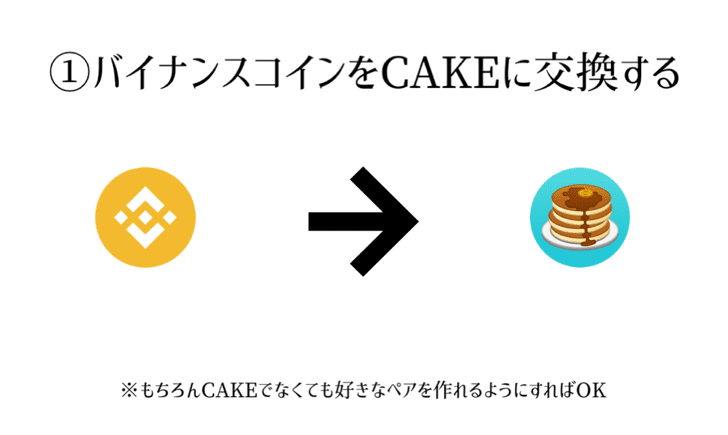 ここから実際にPancakeSwapを使ってみよう。まず大まかな流れは下記の通りである。