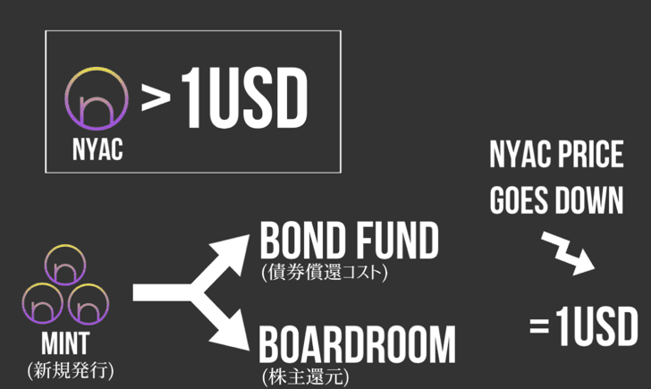 「1NYAC=1USDに維持されるように調整されるのであれ、NYACを買っても儲からないじゃないか!」と思った人は正解で、1USDで1NYACを買ってもほとんど儲かることはないだろう。