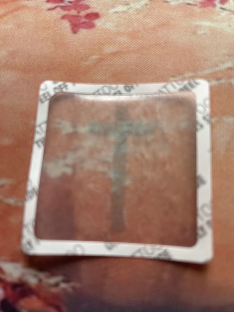 その後、60分間(1時間)放置してはがすと、以下のように色が肌に移る。